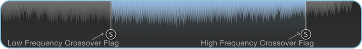 The High Frequency Crossover Flag solos the passband above it—essentially previewing the high frequencies excluded from the process band.